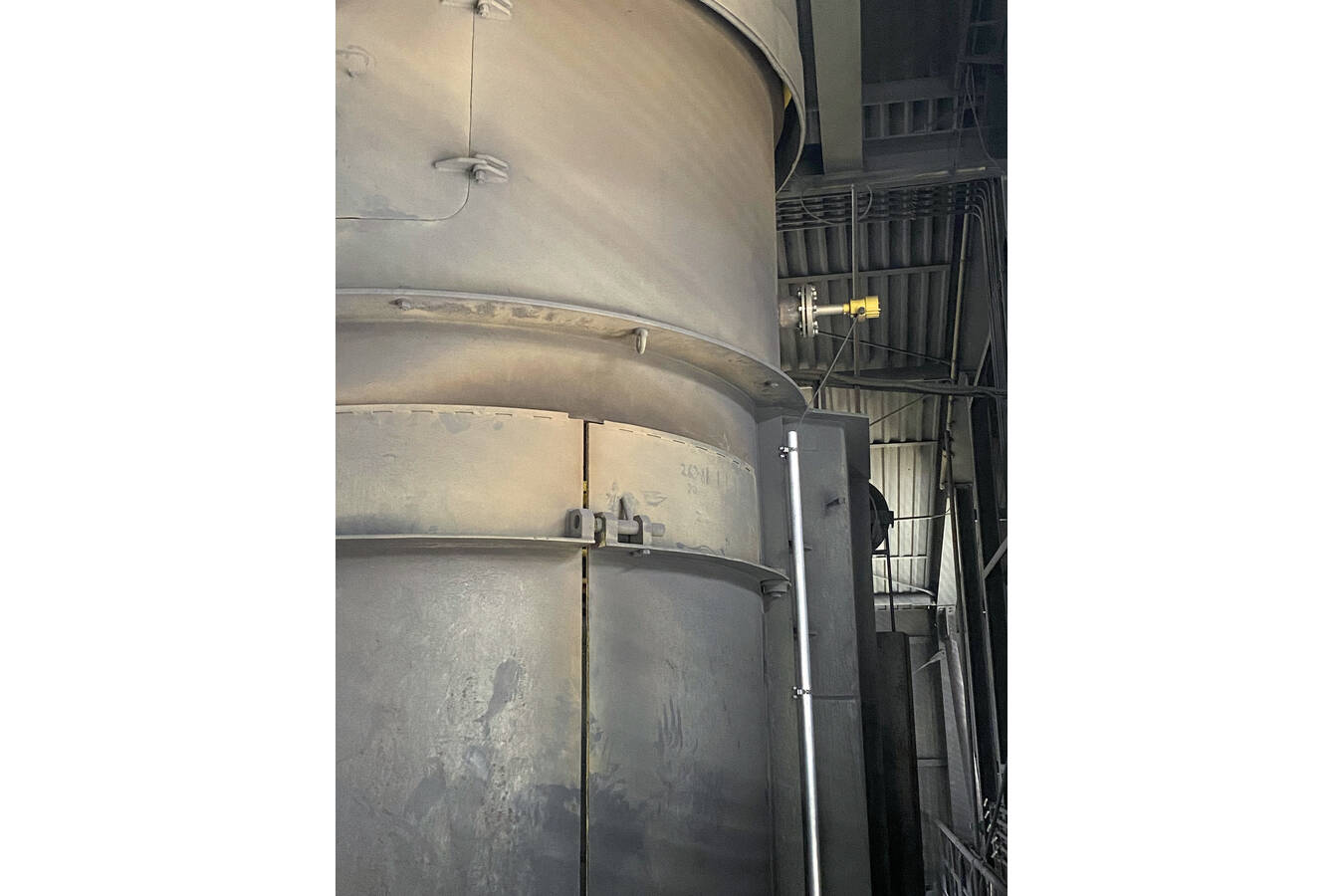 Ein ganz besonderer Einsatzort für die kontinuierliche Füllstandmessung ist der Schachtofen: Hierin werden über einen Förderer die Schrottpakete eingebracht. Neben den erhöhten Umgebungstemperaturen, der Hitze im Prozess sorgen auch Staub und Vibrationen für täglich neue Herausforderungen für diese Messtechnik. Bis Dezember 2021 kam an dieser Stelle eine radiometrische Messung zur Min.-/ Max.-Überwachung zum Einsatz, die jedoch keine zuverlässigen Werte lieferte. Mit dieser Methode war lediglich eine punktförmige Überwachung möglich. Darüber hinaus wollte man die Strahlenquelle vermeiden.