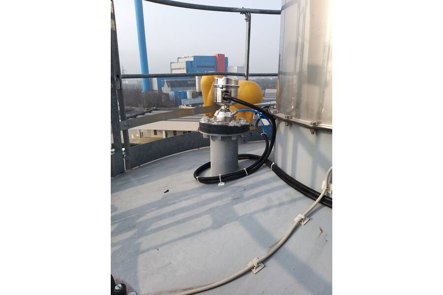 Die Kombination aus hoher Staubentwicklung und anhaftendem Material stellte für den Radarsender keine Herausforderung dar, da der Luftspülanschluss eine regelmäßige, zyklische Reinigung der Linsenantenne ermöglicht. Die Inbetriebnahme mit dem Schnellstart-Assistenten war einfach und intuitiv. Das macht den NR 3100 zur richtigen Wahl in der Zementlageranwendung. Durch den integrierten Zielflansch konnte der Sensor perfekt auf die gewünschte Position auf dem Dach des Silos ausgerichtet werden.