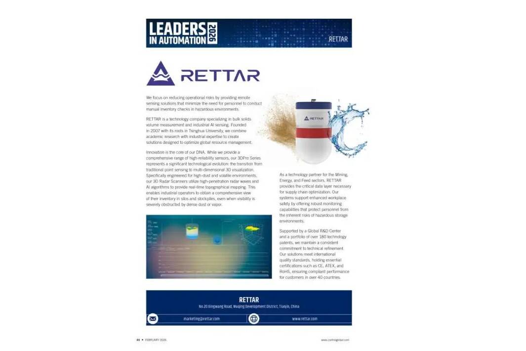 Für RETTAR zeigt die Nominierung für diese Auszeichnungen, dass ihre 3D-Mapping-Technologie führend in diesem Bereich ist. Sie unterstreicht die Fähigkeit des Unternehmens, Radarinstrumente bereitzustellen, die an schwierigen Orten wie Minen, Kraftwerken und schweren Fabriken zuverlässig funktionieren. Diese Bestätigung der Branche unterstreicht, dass RETTAR dazu beiträgt, die industrielle Lagerhaltung in eine intelligentere, digitalere Zukunft zu führen.