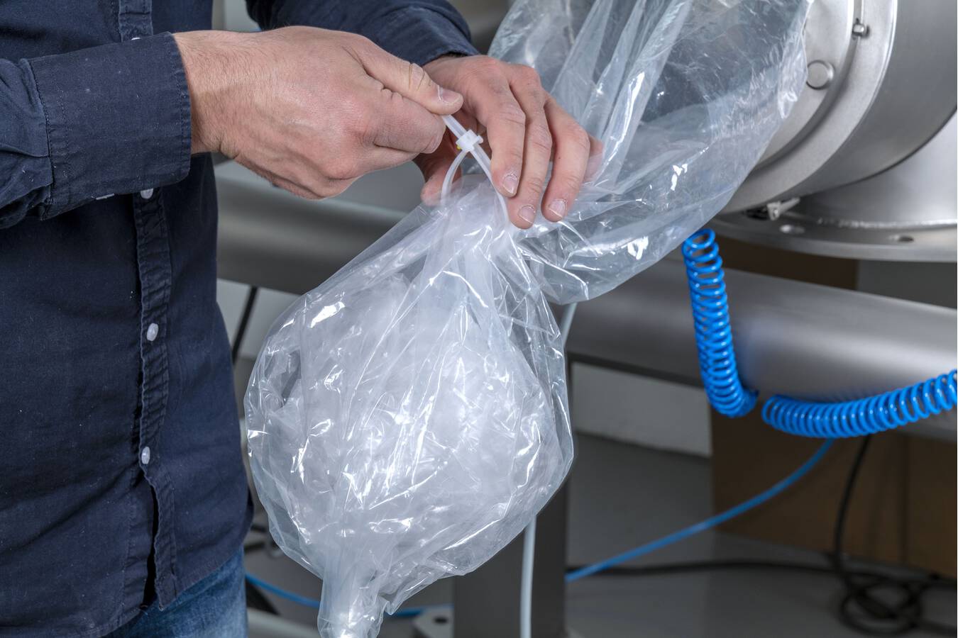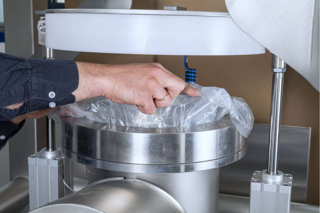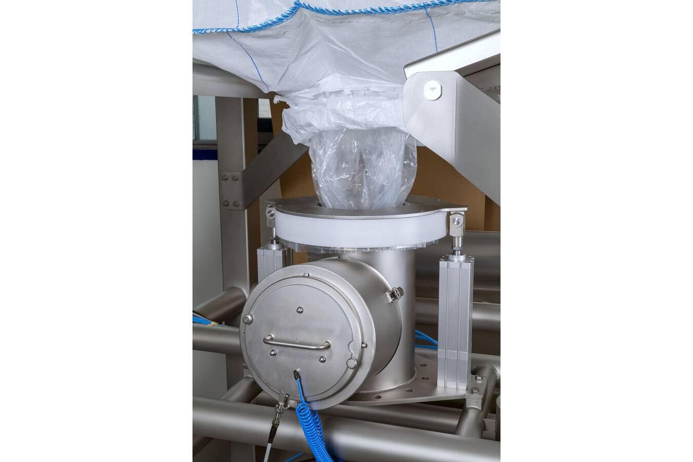 Neuer Big Bag Entleertrichter im Hygenic Design Um einen Big Bag hygienisch zu entleeren, muss die gesamte Entleerstation so konstruiert sein, dass einer Keimbildung durch nicht beseitigte Produktreste oder Verunreinigungen vorgebeugt wird. Der Entleertrichter spielt dabei die größte Rolle, da er das einzige Bauteil einer Entleerstation ist, das direkten Kontakt zum entleerten Produkt hat. Schlecht zugängliche Toträume im Inneren des Trichters können dazu führen, dass sich Produktreste darin festsetzen und verderben. Wird ein neuer Big Bag entleert, kann dessen Inhalt leicht kontaminiert werden.