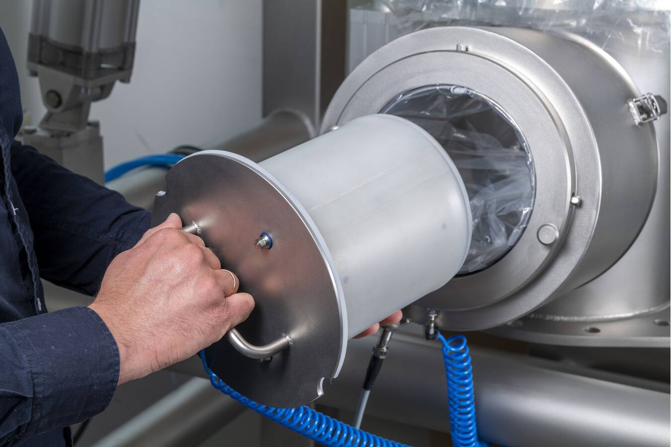 Für Anwendungsbereiche in denen hohe Hygieneanforderungen gelten, empfiehlt Engelsmann daher den Einsatz des neu entwickelten Entleertrichters in Hygiene Ausführung. Der Innenbereich des Trichters ist frei von Toträumen und verlierbaren Teilen, sodass das zu entleerende Produkt weder durch festsitzende Produktreste noch durch sich lösende Bauteile wie Schrauben oder Muttern kontaminiert werden