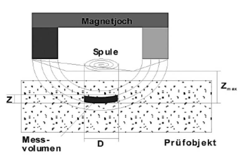 Bild 2. Messprinzip der Kernspinresonanz-Technik (Abbildung: K. Kupfer: Materialfeuchtemessung; expert-Verlag; Renningen-Malmsheim 1997)