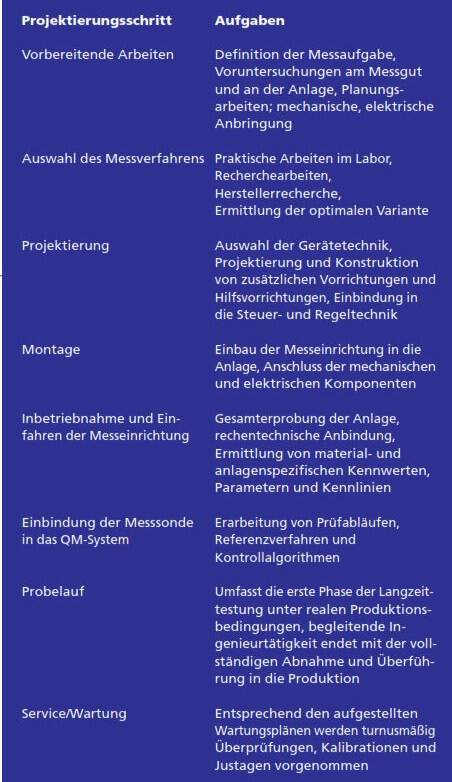 Bevor diese spezifischen Betrachtungen zur Anlage, zum Produkt und zur Messtechnik angestellt werden, muss jedoch Klarheit über die Messaufgabe bestehen: Warum soll gemessen werden? Die Beantwortung der Frage zieht eine Reihe von technischen Konsequenzen nach sich (Tabelle 1).