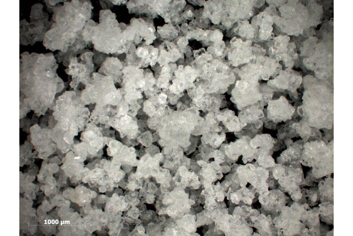 Ein weiterer Prozess typischer Wirbelschichtprozess ist die Agglomeration von Pulvern zu rieselfähigen, staubfreien Granulaten. Um die Einflüsse des Vakuums auf die Granulatbildung zu untersuchen, wurden im Technologiezentrum bei Glatt in Weimar Versuche unter Normaldruck (mit Stickstoffkreislauf) und unter Vakuumbedingungen durchgeführt. Als Modellsubstanz wurde Laktosepulver mit einer 5,5%igen Binderlösung aus Eudragit S 100 und Aceton/Methanol besprüht. Die Zerstäubung im Vakuum erfolgte durch eine Einstoffdüse, wobei die Tröpfchengröße durch die Anpassung der Sprührate eingestellt wurde. Der Binderanteil im Endprodukt betrug 9%. Die Agglomerate (Abb. 1+2) waren sowohl in der Partikelgrößenverteilung (Abb. 3) als auch in der Schüttdichte vergleichbar. Ein deutlicher Unterschied zeigte sich hingegen in der Festigkeit: Die Agglomerate im Vakuum zeichneten sich durch eine mehr als doppelt so hohe Druckfestigkeit (Abb. 4) aus – ein deutlicher Vorteil zum Beispiel für allergene Produkte.