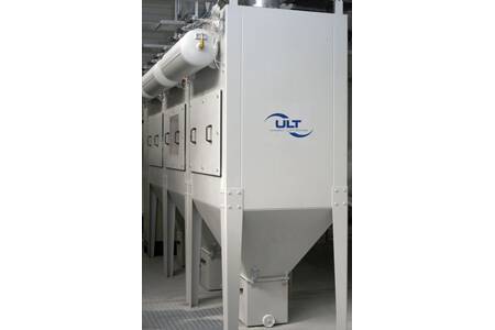 Der Prozess verarbeitet Polyesterharze und Glasfasern unter Beigabe von Füllstoffen. Die Dynamik des Verfahrens verbreitet eine Mischung von klebrigen Partikeln ins Umfeld. Das beeinträchtigt Mensch und Maschine. Dazu kommt die Explosions- und Brandgefahr. Die Erfassung und Abscheidung der hoch aggressiven Substanzen erfordert besondere Vorkehrungen, ansonsten entstehen Verklebungen und Verkrustungen. Filter werden schnell unbrauchbar und Komponenten der Anlage regelrecht zerstört. ULT hat unter Mitwirkung des ILK Dresden (Institut für Luft- und Kältetechnik gGmbH) das Verhalten von Filtern und Filterhilfsmitteln beim Anfiltrieren einer Staubschutzschicht für die Harzteilchen systematisch untersucht. Versuche mit Kalkstaub brachten zunächst keine Verlängerung der Betriebszeiten. Erst die Auswahl eines neuartigen Additivmittels führte zum Erfolg. Es handelt sich um ein Granulat, welches handelsüblich nicht dosier- bzw. flugfähig ist. Die ULT AG hat Möglichkeiten zur Einbringung des Filterhilfsmittels in den Rohgasstrom gefunden. Das Ergebnis sind neu entwickelte Dosiereinrichtungen, die für die Bindung der aggressiven Polyestermischstaubpartikel sorgen, die Standzeiten der Filter verlängern, die Leitungen und Aggregate vor Verschleiß bewahren und damit Kosten senken.