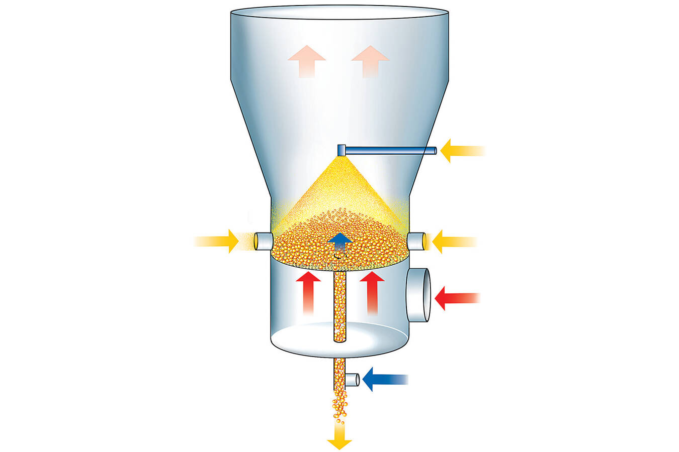 Wirbelschichttechnologien eignen sich ideal zur Durchführung von Wärme- und Stoffübergangsprozessen, die bei der Trocknung gefragt sind. Partikel können parallel zur Trocknung mittels Sprühgranulation, Sprühcoating oder Sprühagglomeration gleichzeitig wirtschaftlich veredelt und funktionalisiert werden. Die Auswahl des richtigen Trocknungsverfahrens ist herausfordernd: Sie hängt von den jeweils vorliegenden Rahmenbedingungen ab und erfordert eine ganzheitliche Betrachtung.