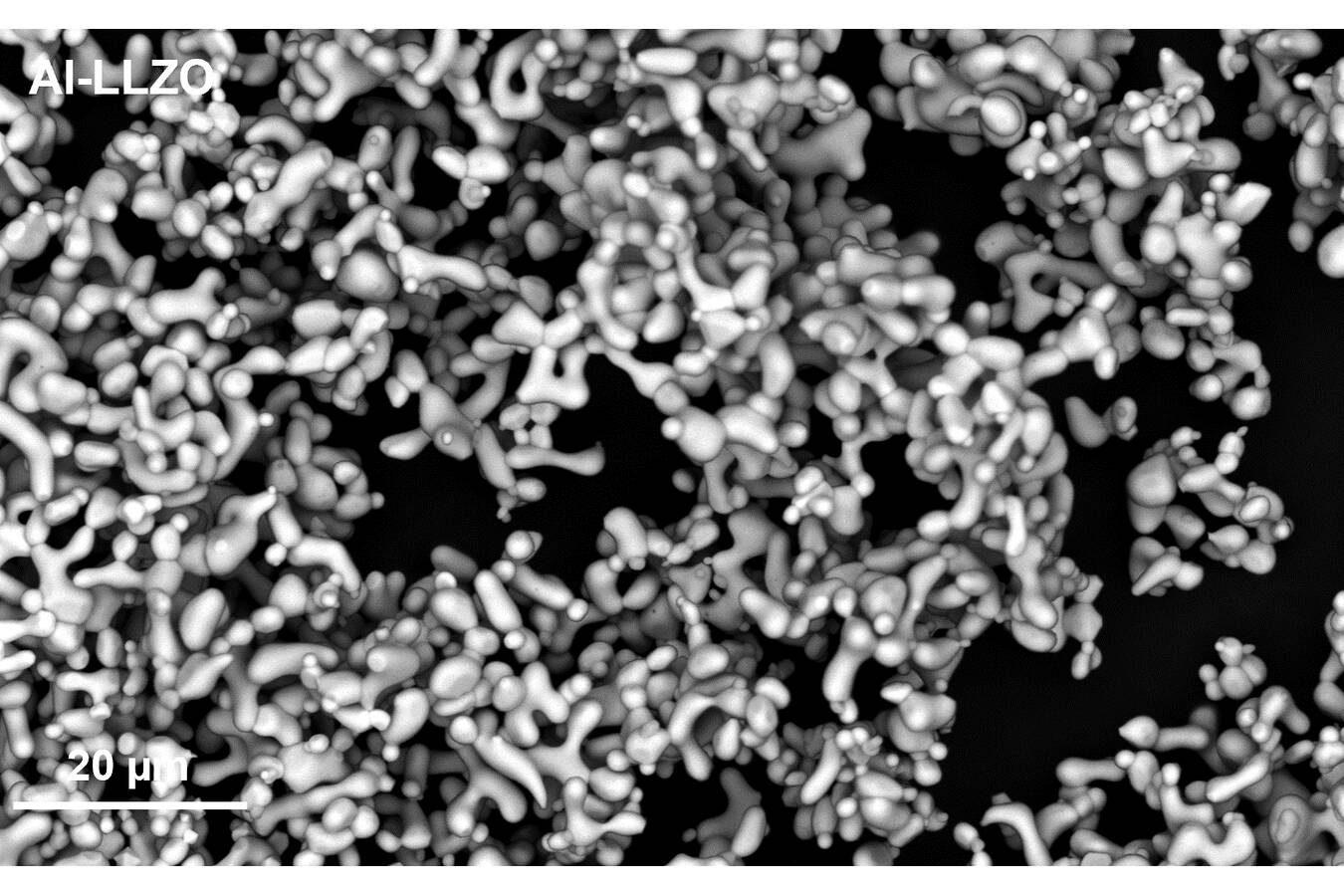 Die Pulversynthese findet dabei im Rahmen verschiedener Projekte für die Entwicklung von oxidischen Feststoffelektrolyten Anwendung, insbesondere von Lithium-Lanthan-Zirkon-Oxid (LLZO) und dotierten Varianten auf Basis kostengünstiger Rohstoffe. Die Einstellung von Partikelgröße, Schüttdichte und Morphologie erfolgt durch Anpassung verschiedener Parameter und die Weiterverarbeitung der Pulver zu keramischen Folien ist ebenfalls möglich. Die Maßstäbe konventioneller Prozesse zur Herstellung von LLZO liegen üblicherweise im Gramm- oder Kilogramm-Bereich. Der Vorteil der Pulversynthese besteht in der Skalierbarkeit zum Produktionsmaßstab.