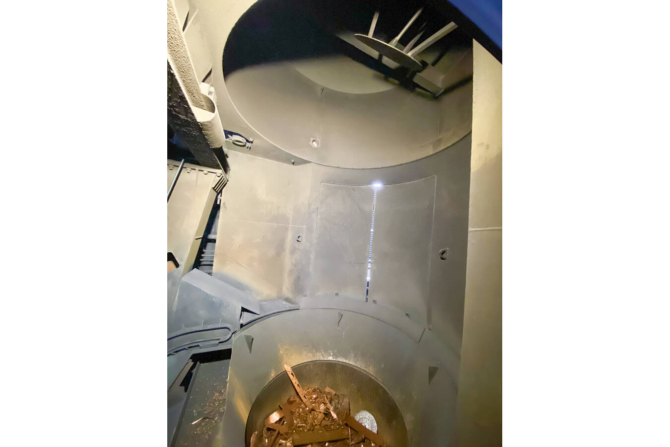 Nun hält der Radarsensor VEGAPULS den Füllstand im Schachtofen genau auf dem optimalen Punkt. Mithilfe eines 45°-Spiegels wird die Füllhöhe des Schachtofens vom außen montierten VEGAPULS im Ofen gemessen. Der Sensor wurde Ende Dezember 2021 von Oberladstätter und seinem Team installiert und in Betrieb genommen. Die Feinjustierung übernahm ein VEGA-Ingenieur.