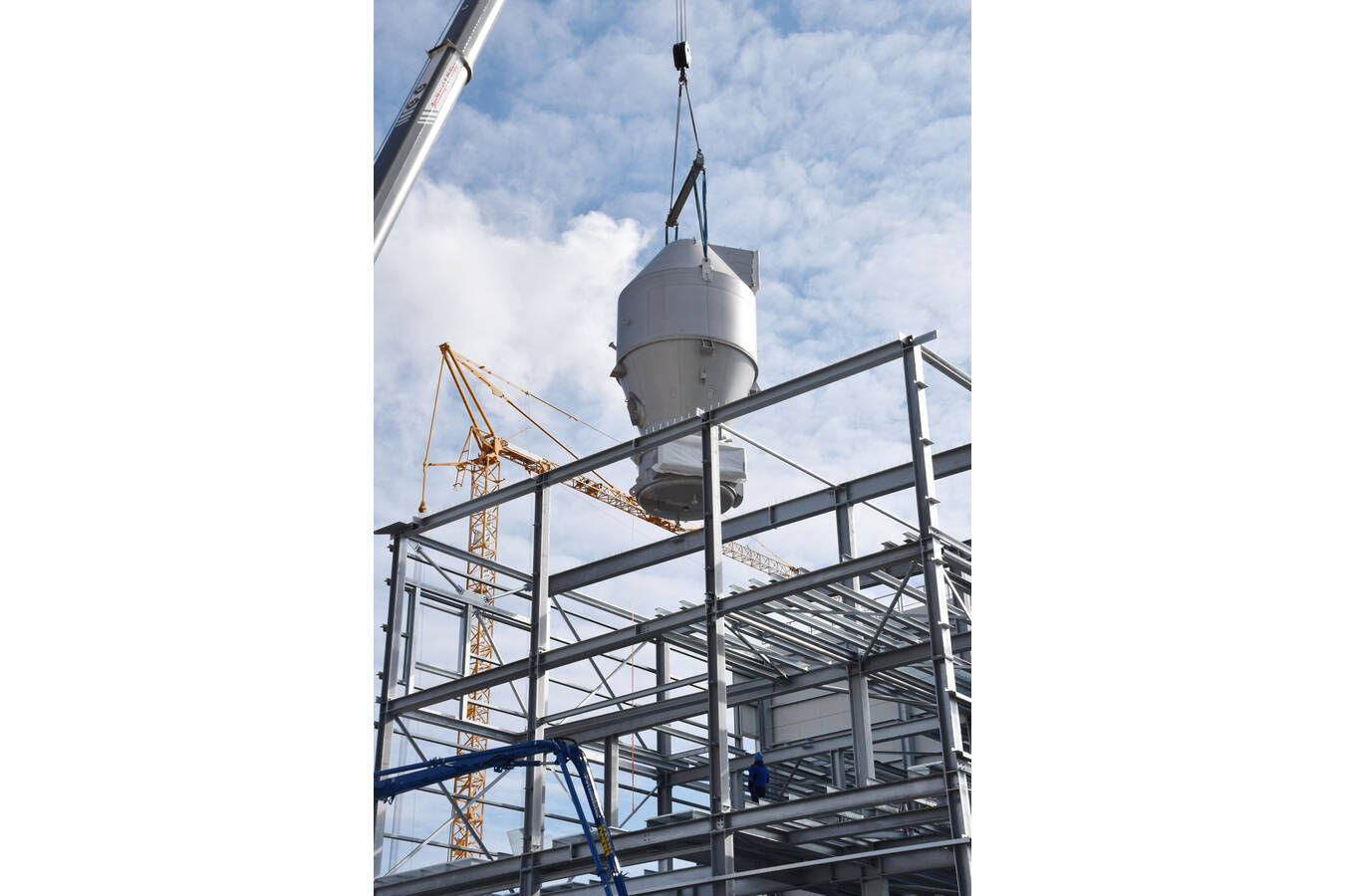 Erste großtechnische Produktion in Deutschland: Ende 2020 nimmt der Entwicklungspartner Seraplant, ein Düngerhersteller aus Sachsen-Anhalt, den Betrieb einer PHOS4green-Produktionsanlage auf. Die neue Anlage ist für eine Jahresproduktion von 60.000 Tonnen phosphathaltige Einzel- und Mehrnährstoffdünger ausgelegt. Herzstück des Prozesses ist der Apparat für die Sprühgranulation.