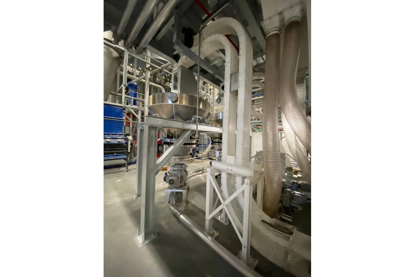 Die Maschine eignet sich gut für kreisförmige Prozesse und eignet sich auch für pulverförmige Produkte, auch für sehr feine Produkte wie Ruß oder sehr wässrige Milchpulver wie fein gemahlenes Soja. In Bezug auf Atex sind keine zusätzlichen Einrichtungen erforderlich, unter anderem aufgrund der geringen Geschwindigkeit von Ruß
