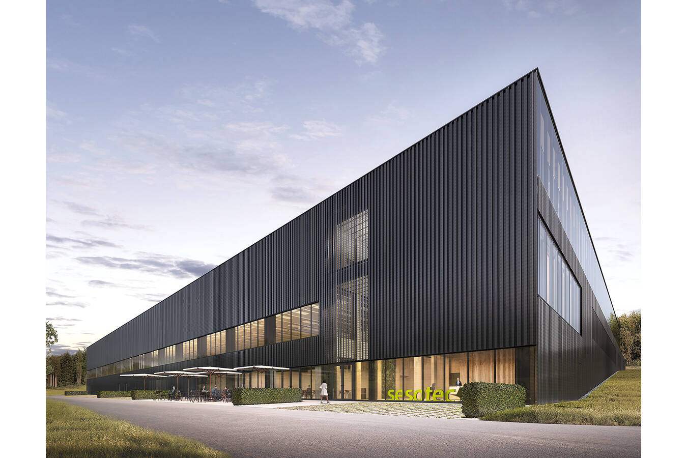 In puncto nachhaltiges Design und ressourcenschonende Maßnahmen und Funktionalität geht der Neubau von Sesotec aber noch einen Schritt weiter: Eine integrierte zweischichtige Fassade trägt nicht nur zur ästhetischen Gestaltung bei, sondern spielt auch eine Schlüsselrolle bei der Beschattung und Klimatisierung des Gebäudes. Diese speziell entworfene Fassade ermöglicht es, das natürliche Tageslicht optimal zu nutzen, während sie gleichzeitig die Hitze reduziert und so zu einer angenehmen Innentemperatur beiträgt. Dieses intelligente Design reduziert den