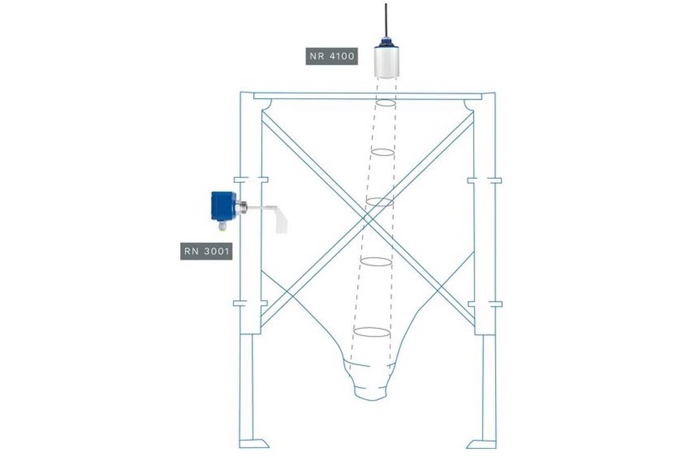 Optimierte Füllstand- und Grenzstandmessung; Ausgangsmaterialien werden häufig in Textilsilos gelagert, wobei Voll-, Bedarfs- und Leermelder mittels Flansch direkt in das Gewebe eingenäht sind.