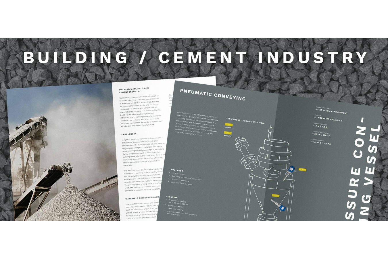 In der Baustoff- und Zementindustrie sind Effizienz und Prozesssicherheit entscheidend. Umweltauflagen und ressourcenschonende Herstellungsverfahren erfordern präzise Messtechnologien. Gleichzeitig müssen robuste Lösungen extremen Bedingungen wie hohen Temperaturen, abrasiven Materialien und starker Staubbelastung standhalten.