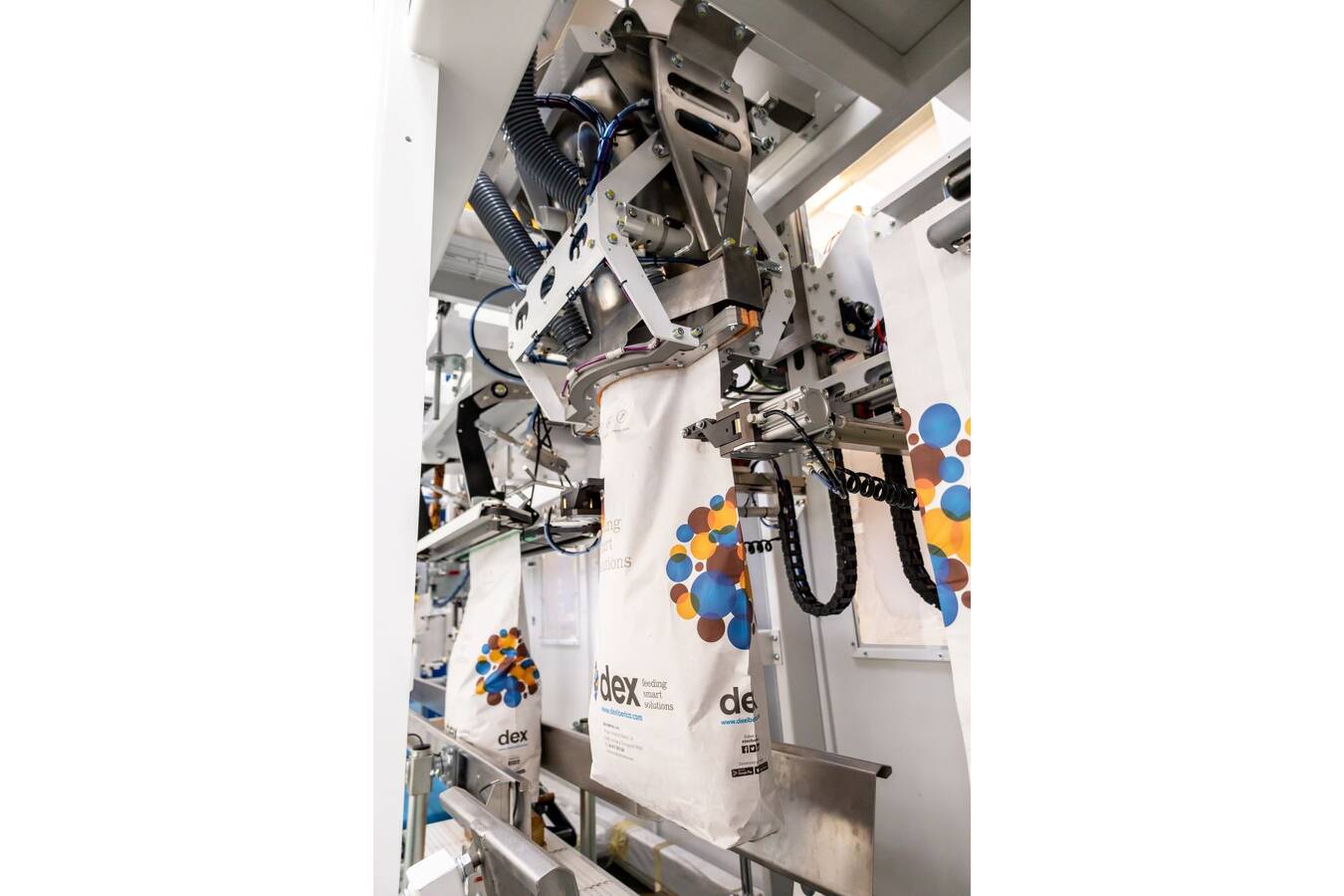 Alle Prozessschritte – von der präzisen Verwiegung über Abfüllung, Dichtigkeitsverschluss, Gewichtskontrolle und Ausschleusung bis hin zu Palettierung, Umwicklung und Seitenschutz – erfolgen automatisiert auf rund 75 m². Das hygienische Maschinendesign reduziert Staubemissionen, vereinfacht die Reinigung und steigert die Verfügbarkeit deutlich.