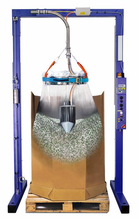 Durch die unterschiedlichen Bauformen, wie der Ein-Säulen-Ausführung oder der besonders platzsparenden Portal-Version passen sich die Oktomat® Entleerstationen allen räumlichen Gegebenheiten an. Insgesamt sind vier Baureihen von Oktomat® Entleerstationen verfügbar. Alle verfügen standardmäßig über einen Edelstahl-Saugkopf mit integriertem Vibrator, der das Schüttgut auflockert und dadurch optimal nachfließen lässt. Gleichzeitig sorgt die patentierte Sackhebe-Automatik dafür, dass das Folieninlet oder der BigBag nach oben und nach innen gezogen werden. So fließt bei sinkendem Füllstand das Schüttgut zum mittigen Saugkopf hin nach. Zur Restlos-Entleerung wird der Sack automatisch und vollständig vom Boden weggehoben.