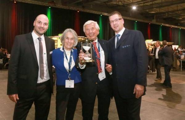 Der zweite Preis, der an diesem Abend an Dr. Reinhard Wöhlbier verliehen wurde, war der neu ins Leben gerufene Deutsche Schüttgut Verdienstpreis (DSVP). „Mit ihm wollen wir eine Person ehren, deren Wirken in der deutschen und internationalen Schüttgut-Industrie deutliche und nachhaltige Zeichen hinterlassen hat“, sagte Stefan Penno, Vorsitzender des Deutschen Schüttgut Industrie-Verbandes e.V. und überreichte die Auszeichnung an Dr. Reinhard Wöhlbier, „der seit vielen Jahrzehnten die Schüttgut-Branche prägt wie kein Anderer“.