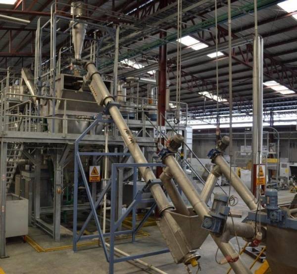In einem zweiten Schritt entstand eine Anlage zur Aufbereitung der Polyolefinfraktion aus dem Recyclingprozess, die caps und labels der Flaschen.