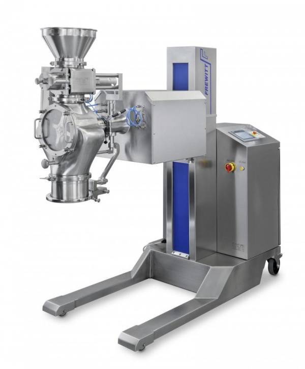 DAS NOVUM: Die nach den Standards der Pharmaindustrie gebaute HammerWitt, eröffnet dem Bediener durch ein bis ins Detail durchdachtes mobiles Konzept beinahe unbegrenzte Flexibilität. Der Bediener hat die Möglichkeit, die auf einer Hubsäule montierte Mühle irgendwo im Produktionsraum anzudocken, mit einem Knopfdruck das Gerät auf die gewünschte Höhe zu bringen und es als offenes oder geschlossenes System in eine bestehende oder neue Anlage einfach zu integrieren.