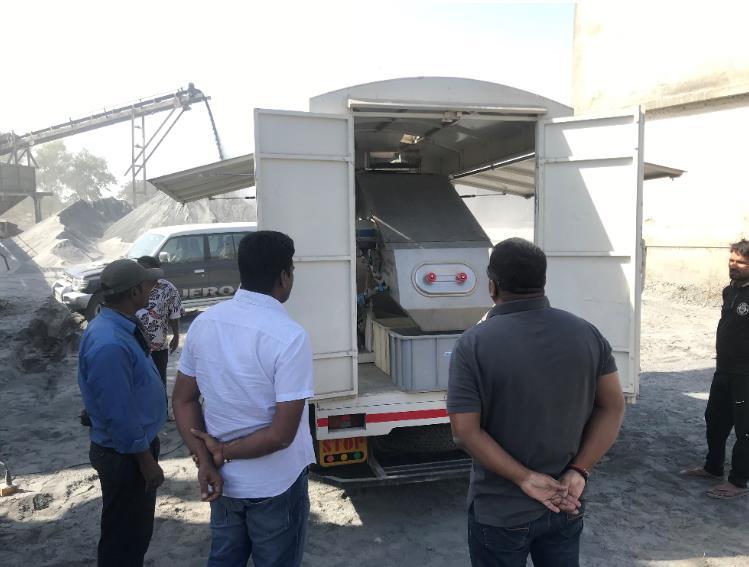 Wenn der Kunde nicht zur Siebmaschine kommen kann, kommen wir eben mit der Siebmaschine zum Kunden – das war die Idee einer mobilen Rhewum wa(U). Damit haben wir bereits im letzten Jahr eine erfolgreiche Roadshow in Indien durchführen können. Dabei wurden verschiedene Unternehmen aus den Branchen Düngemittel, Zucker und Sand besucht.