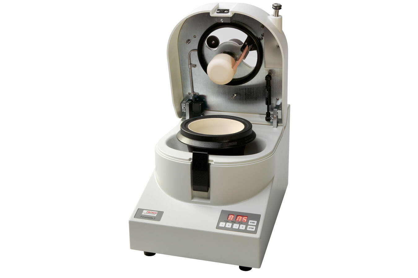 Durch ihre spezielle Arbeitsweise ist die Fritsch Mörsermühle Pulverisette 2 die ideale Universalmühle im Labor – für Analyse, Qualitätskontrolle und Materialprüfung genauso wie zum Mischen und Homogenisieren von Pasten und Cremes im Labormaßstab. Ihre besonders temperaturschonende Zerkleinerung durch Verreibung ist ideal zur Aufbereitung von Tabletten in der Galenik. Mit flüssigem Stickstoff mahlt sie auch schwierige Proben mit feuchter, faseriger oder elastischer Struktur. Und auch zum Mischen von Feststoffen oder Flüssigkeiten und Feststoffen ist die Pulverisette 2 ideal geeignet. Mit kurzen Mahl- und Mischzeiten, verlässlich reproduzierbar, verlust- und staubfrei. Für Endfeinheiten zwischen 10 und 20 μm bei einer Aufgabegröße von 6 – 8 mm und einer max. Aufgabemenge von bis zu 190 ml.