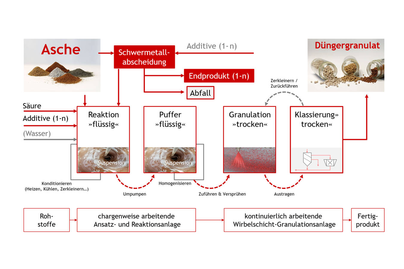 Phosphatdünger aus recycelten Klärschlammaschen mit der PHOS4green-Technologie von Glatt: eine ökonomisch und ökologisch sinnvolle Lösung Aschebasierte Recycling-Verfahren zählen zu den vielversprechenden und wirtschaftlich attraktiven Möglichkeiten, wenn es um die Umsetzung der gesetzlich festgelegten Phosphorrückgewinnung geht. Seit Juni sind die ersten, mit dem PHOS4green-Verfahren hergestellten Dünger auf dem deutschen Markt erhältlich. Entwickelt wurde die Technologie, die das in Klärschlammaschen enthaltenen Phosphor aufschließt und in marktfähigen Endprodukten wiederverfügbar macht, von dem Anlagenbauer und Prozessexperten Glatt Ingenieurtechnik in Kooperation mit dem Düngerspezialisten Seraplant. Im Interesse vieler Akteure Im Industriepark Höchst wird seit Herbst 2020 im Rahmen des Verbundvorhabens RePhoRM an einer technologischen und organisatorischen Verbundlösung für ein Phosphorrecycling im Rhein-Main-Gebiet gearbeitet (Verfahrenstechnik 11/2020 berichtete). Dabei wird zunächst im Labormaßstab die grundlegende Eignung zur Schwermetallentfrachtung untersucht. Schwermetalle