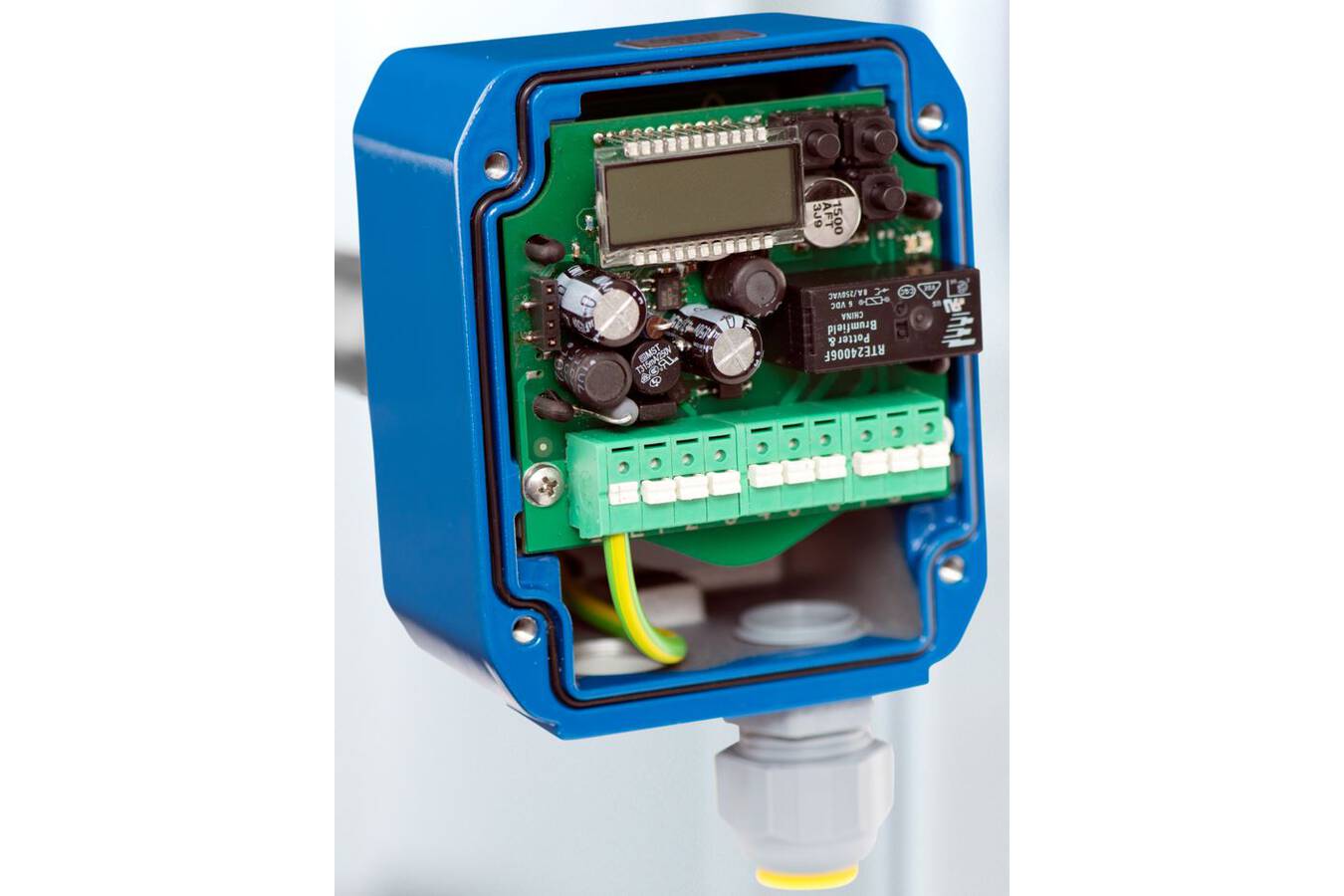 Die universelle Spannungselektronik ist mit einem übersichtlichen Display und 3 Tasten ausgestattet und liefert ein DPDT-Signal zur Signalanalyse. Während des gesamten Betriebs werden die aktuellen kapazitiven Messdaten auf dem Display angezeigt. Parameter wie FSH und FSL sowie die Ansprechzeit des Signalausgangs lassen sich einfach über das Schnellstartmenü einstellen.