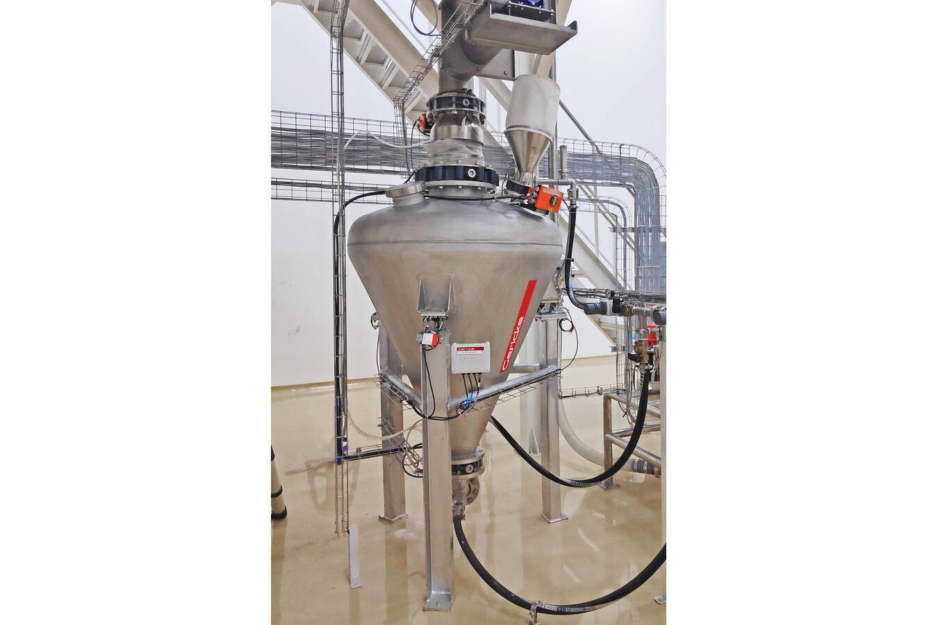 Das Gericke PulseFlow PTA Fördersystem belässt nicht nur die Korngrössenverteilung, sondern benötigt nur eine geringe Menge Druckluft, was sich in einem niedrigen Energieverbrauch niederschlägt. Dank der geringen Luftmenge ist kein spezieller Staubfilter auf dem Mischer notwendig.