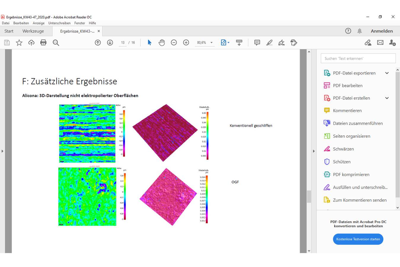 Durch einen Zufallsbefund im Rahmen einer Verfahrensoptimierung hat sich gezeigt, dass durch eine extrem sanfte mechanische Oberflächenbearbeitung, dem sogenannten Optimized Grind Finishing (OGF) die oberflächennahe Gefügeschädigung so verändert wird, dass die Haftkräfte gegenüber dem Kontaktmaterial verändert werden. D.h. bei einigen Anwendungsfällen haben die Kunden festgestellt, dass Partikel oder auch viskose Medikamentenformulierungen, Milchpulver, besser Fließen bzw. weniger anhaften und weniger Rückstände verbleiben, die sich leichter entfernen lassen. Da es sich dabei um eine Systemeigenschaft, d.h. die Interaktion der Oberfläche mit einem Kontaktstoff handelt werden die Ergebnisse von beiden Komponenten beeinflusst und dürfen nicht verallgemeinert werden.