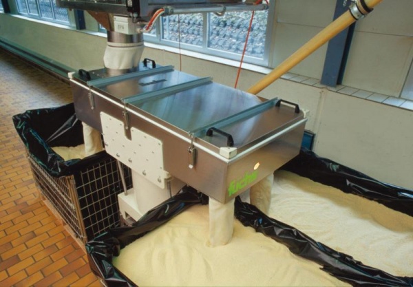 All diesen Erkenntnissen folgernd, stellte man fest, dass grundsätzlich eine Plansiebmaschine des Typs FUCHS SIFTOMAT den Voraussetzungen am besten entspricht, da sie keine vertikale Komponente enthält. Außerdem hat die rechteckige Bauform gegenüber der runden den wesentlichen Vorteil, dass die Siebbreite bei fortschreitendem Siebprozess nicht zunimmt. Im Gegenteil, FUCHS unterteilt die Siebfläche, also das Lochblech, in mehrere Segmente gelochter und ungelochter Bleche. Damit kann die gelochte Fläche jeweils dem benötigten Kapazität angepasst werden: Es werden nur so viele gelochte Segmente eingelegt, wie notwendig. Die anderen Segmente sind ungelocht. Damit wird eine zu große Siebfläche verhindert.“