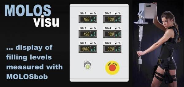 Sie sind die ideale Ergänzung zu den Messgeräten der MOLOSbob- und MOLOSwave-Baureihe. Je nachdem wie viele Füllstände dargestellt werden sollen, wird eine entsprechende Anzahl von LED-Anzeigen in einen Schaltschrank eingebaut. Dadurch wird eine übersichtliche Anzeige der Füllstande in der gesamten Silo-Anlage ermöglicht. Bei Bedarf können auch Anzeigegeräte verwendet werden, die noch zusätzlich die Möglichkeit haben, bei zwei verschiedenen Füllständen jeweils ein Relais zu schalten, um beispielsweise auf eine Leersituation hinzuweisen.