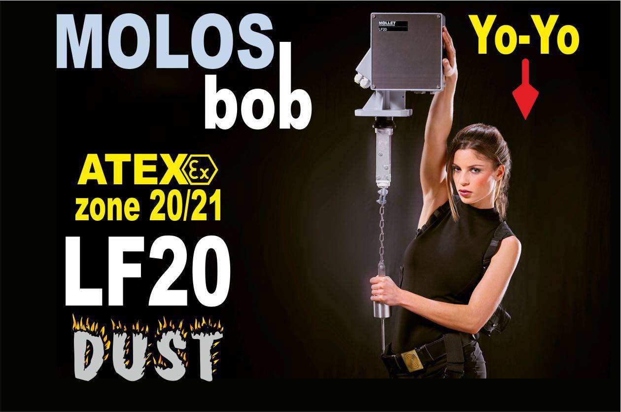 MOLLET Füllstandtechnik bietet Ihnen das Lot-Messsystem MOLOSbob LF20 zur kontinuierlichen Füllstandmessung mit der dafür erforderlichen ATEX-Zulassung. Dieses kompakte und robuste Messgerät mit Edelstahlband, liefert unbeeinflusst von Schüttguteigenschaften wie z.B. Permittivität, Staub, Feuchtigkeit, Leitfähigkeit oder Körnung genaue Füllstandmessergebnisse bis zu einer Silohöhe von 42 Metern. Einfachste Installation und eine einmalige Parametrierung, die auch bei veränderten Prozessbedingung nicht anpasst werden muss, sind weitere Vorteile dieser Technologie.