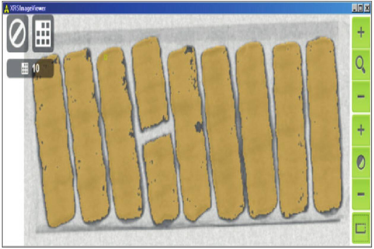 Es wurde auch lange angenommen, dass Holz als Fremdmaterial mit der Röntgentechnologie nicht erkennbar ist. Abbildung 2 zeigt jedoch, dass ein Röntgensystem nicht nur Stieleis mit fehlendem Stiel, sondern auch mit zu kurzem Stiel erkennen und automatisch aussortieren kann.