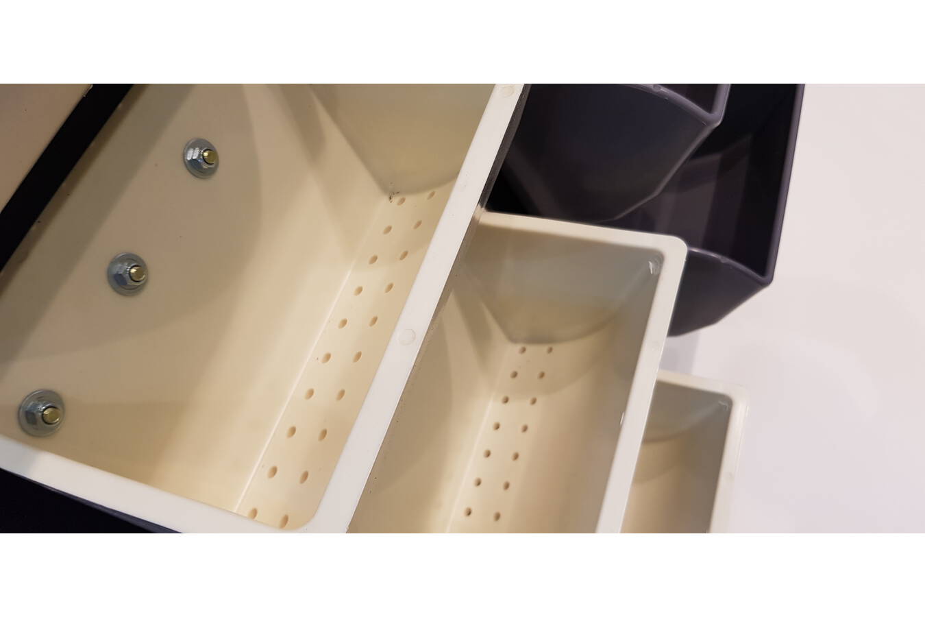 Bei extrem leichten Materialien wie Alfalfa-Mehl, Rechengut und Kleieflocken minimieren belüftete Becher nicht nur das Aufwirbeln während der Füllung und Entleerung, sondern reduzieren auch Luftverwirbelungen durch leere Becher im Rücklaufschacht. Die Reduzierung des Luftstroms vermindert das Vakuum, welches leichte Materialien durch den Rücklaufschacht zurück zum Becherwerksfuß saugen kann.