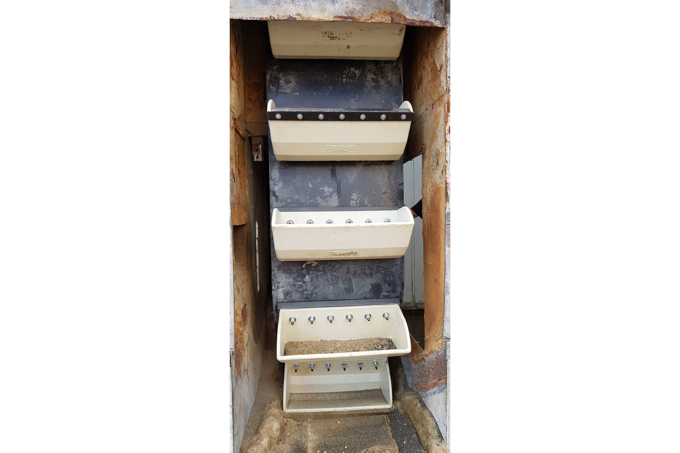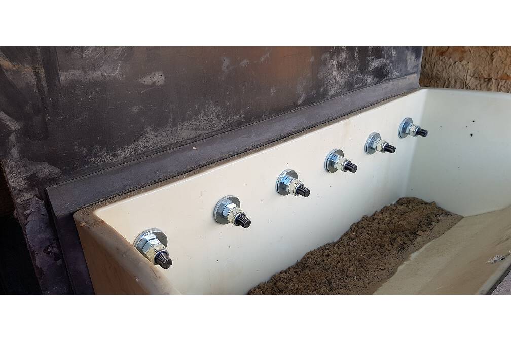 Die Elevatorbecher waren durch Verschleiß dünn geworden und begannen zu brechen. Das feuchte Fördergut hatte im Laufe der Zeit die Schrauben und Muttern korrodiert, wodurch Becher lose wurden, was zu Leistungsverlust und Schäden an der Anlage führte. Muller Beltex montierte an dem neuen Gurt die robusten Maxi-Lift Nylon Tiger-Tuff Elevatorbecher. Spezielle Gummi-Zwischenlagen zwischen Becher und Gurt verhindern, dass Fördergut eingeklemmt wird und den Gurt beschädigen kann. Jeder zehnte Becher hat eine Schöpfkante aus Hardox, die höheren Schutz beim Schöpfen von verschüttetem Material aus dem Becherwerksfuß bieten und auch Verschleiß an den Nylon-Schöpfkanten der anderen Becher verhindern.