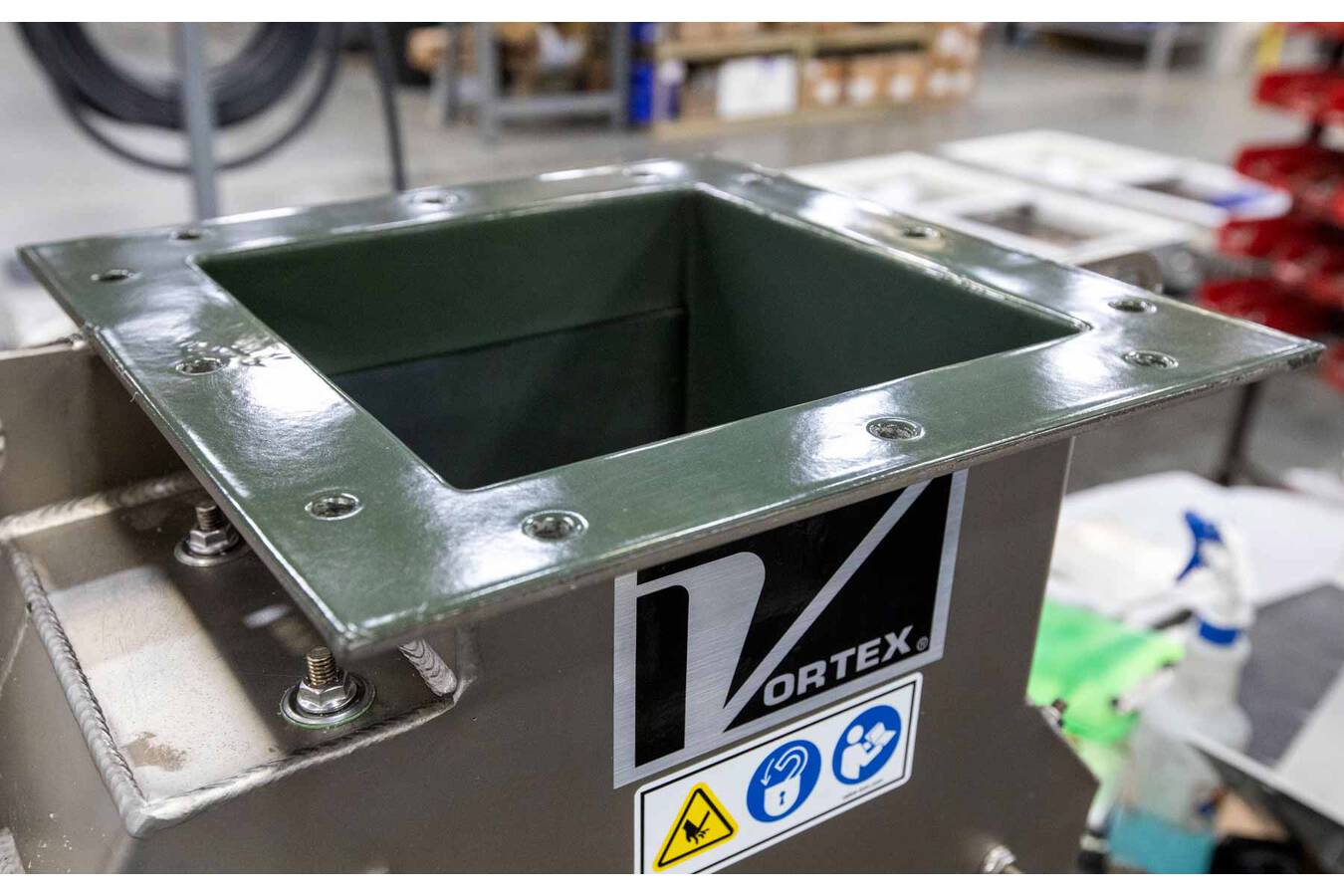 Vortex hat die DN250 2-Wege Seal Tite Weiche komplett in Edelstahl 1.4404 gefertigt und alle innenliegenden produktberührende Bereiche wurden mit Halar beschichtet. Um einfach an das innere der Weiche zu gelangen, besitzt diese eine Schnellzugangsklappe. Somit können Inspektionen, Reinigungen und Wartungen vorgenommen werden, ohne das die Weiche ausgebaut werden muss.