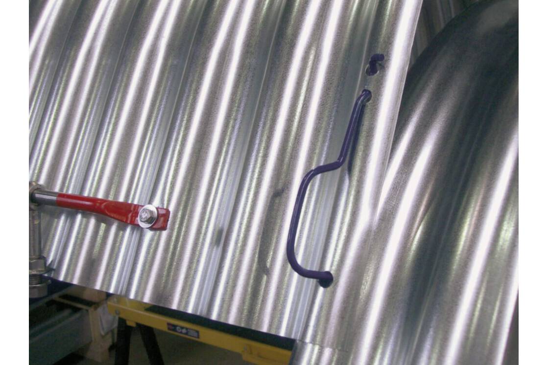 Die simpleTec-Haube von Achenbach verfügt über 4 verzinkte Scharnierbolzen und 4 kleine, verzinkte Winkel. So kann die Haube an jeder Stelle einfach auf dem vorhandenen Bandgerüst befestigt werden und benötigt i.d.R. keine separate Unterkonstruktion.