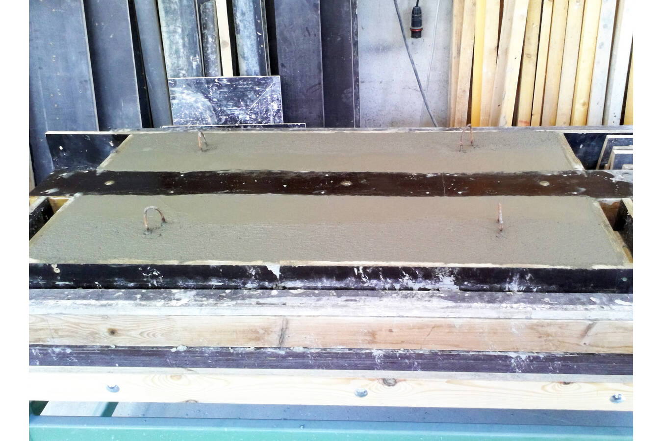 Der eigens für den Fachbetrieb angefertigte Vibrationstisch wird mit zwei Elektro-Außenvibratoren angetrieben, die an der Tischunterseite montiert sind. Das beständige Rütteln der Vibratoren entlüftet den Beton und sorgt für eine gleichmäßige Verdichtung in den Schalformen auf der Tischplatte. Das Ergebnis: Absolut porenfreie Betonteile, die ideal für die Weiterverarbeitung und Veredlung sind.