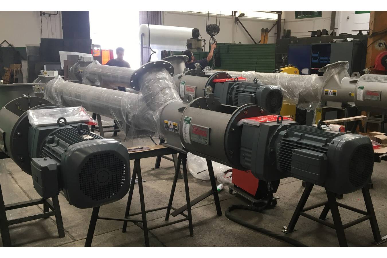 Das Projekt umfasste auch mehrere Entnahmeschnecken zum Entladen von Silos und Big-Bags sowie Förderschnecken für den Transport mit Durchsätzen von 9 bis 36 Tonnen pro Stunde. Einige dieser Förderschnecken sollten unter einer Neigung von bis zu 35° montiert werden. Bei der Konstruktion der Schnecken musste daher die Funktion der einzelnen Förderer berücksichtigt werden. Die Steigung, die Leistung und die Geschwindigkeit der Antriebe wurden speziell für jede Schnecke berechnet.