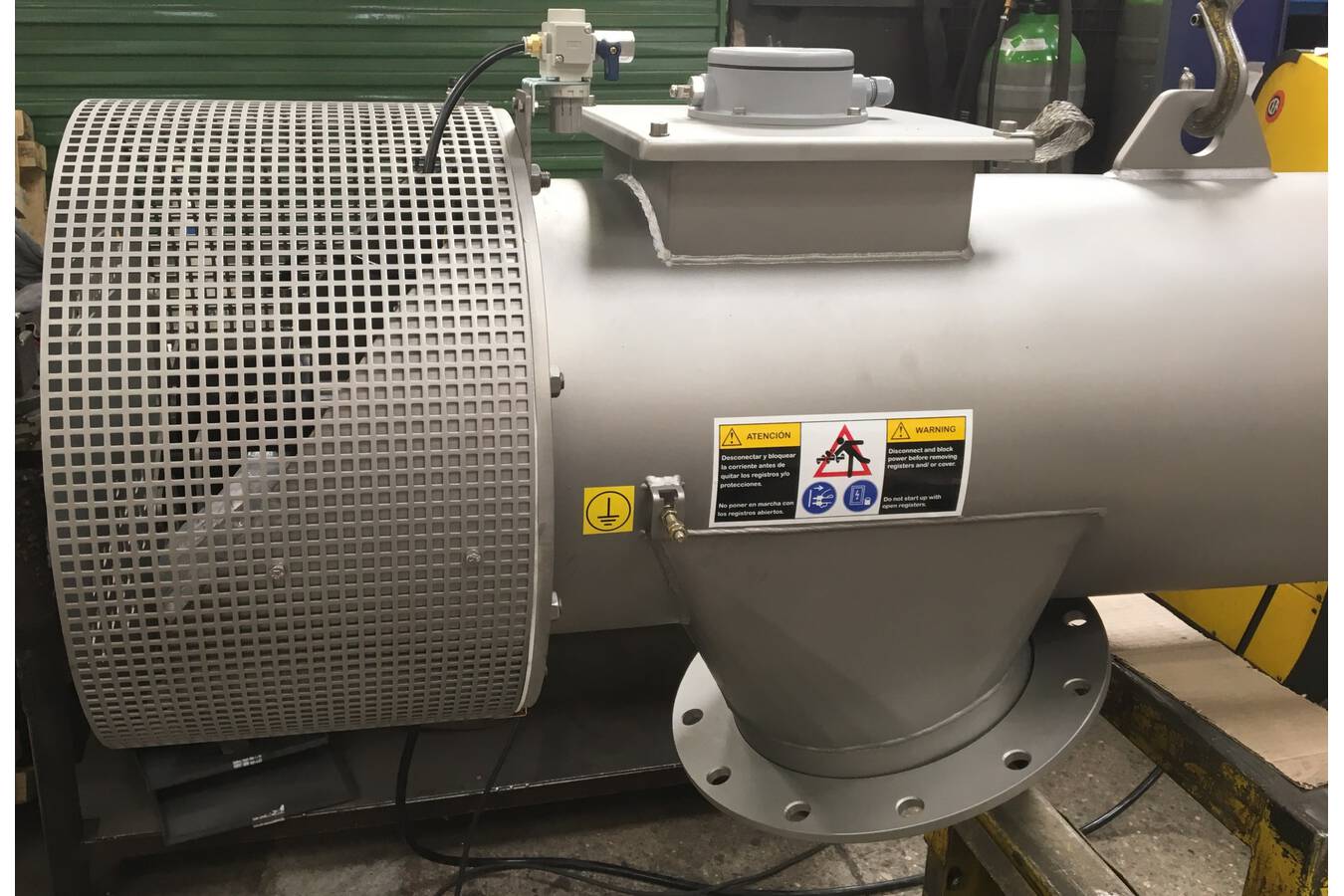 SINFIMASA entwarf und fertigte eine 3,5 m lange Förderschnecke, die komplett aus 316L-Edelstahl mit satinierter Oberfläche besteht und für die Zone 1/21 nach ATEX zertifiziert ist, um chemisches Pulver zu fördern. Unser Kunde aus der Pharmabranche benötigte ein Schneckenförderer zur Entnahme von chemischem Pulver aus einem Tank in einem geschlossenen Raum mit einem Stickstoffstrom-Inertisierungssystem. Die Maschine musste für die ATEX-Zone 1/21 zertifiziert und für diese Art von Standort zugelassen sein. Weitere Anforderungen waren eine Durchflussmenge von 3 m3/h und eine Neigung von 29º. Die größte Schwierigkeit bei diesem Projekt waren die Arbeitsbedingungen in einem hochexplosiven Gebiet. SINFIMASA hat ein Schneckenförderer TS-150/170 mit einem Abstand von 3.470 mm zwischen die Öffnungen und ATEX-Zertifizierung konstruiert und hergestellt; das komplett aus 316L-Edelstahl (Trog, Deckel und Schnecke) besteht und satinpoliert ist. Der Förderer ist mit einem 3 kW SEW-Getriebemotor ausgestattet. SINFIMASA hat die folgenden Kennzeichnungen vorgenommen: * Ex II 2 G Ex h IIB T3 Gb (Zone 1 - GAS) * Ex II 2 D Ex h IIIC T160ºC Db (Zone 21 - DUST) Es wird zusammen
