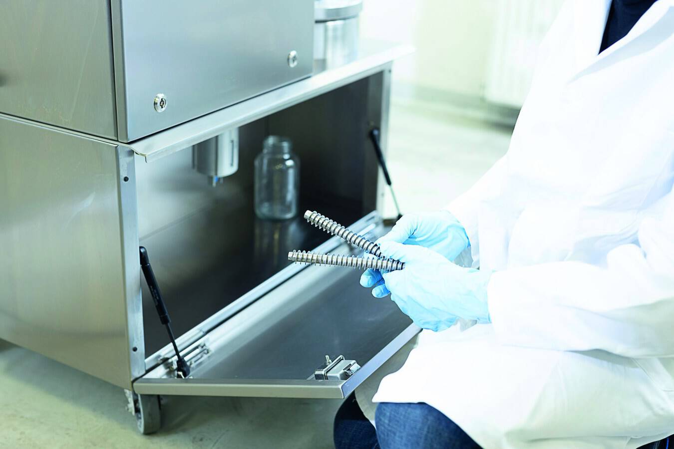 Für eine höhere Flexibilität und Effizienz kann der Mahlraum der AMB an die Eigenschaften des Zerkleinerungsgutes angepasst werden. Die neue Spiralstrahlmühle, die optional mit Verschleißschutz ausgestattet werden kann, ist in den Baugrößen 100, 200 und 315 bei Hosokawa Alpine erhältlich. „Die Maschine entspricht in ihren Baugrößen und der Peripherie weitgehend unserer AS-Reihe. Weitere wichtige Punkte sind die Monobloc-Ausführung und unser Hygienic-Design, die sich beide vielfach bewährt haben“, erklärt Hermann Schmidt. Die durchdachte Konstruktion und der Einsatz von Clamp-Klammern sorgen für eine schnelle und unkomplizierte Demontage und dafür, dass schnell und sauber gereinigt werden kann. Ein einfaches Explosionsschutzkonzept, eine einfache Handhabung, und der modulare Maschinenaufbau runden das Konzept ab.