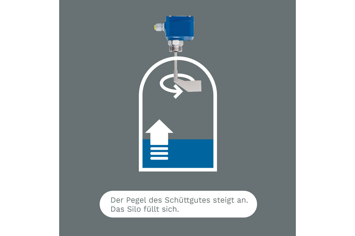 Der Rotonivo® Drehflügelschalter wird je nach Anforderung als Voll-, Bedarfs- oder Leermelder in Lagersilos oder Prozessbehältern eingesetzt und ist für den Einsatz in nahezu allen Schüttgütern geeignet. Mit seinem einfachen elektromechanischen Messprinzip kann er auch für extreme Prozessbedingungen angepasst werden. Eine motorisch angetriebene Welle versetzt die Schaufel in Rotation. Erreicht der Füllstand die Schaufel und verhindert damit eine weitere Drehung, entsteht ein Drehmoment, das über einen Schalter in ein elektrisches Signal umgewandelt wird. Sobald die Schaufel wieder frei vom Material ist, wird das Ausgangssignal zurückgesetzt und die motorgetriebene Welle dreht sich wieder.