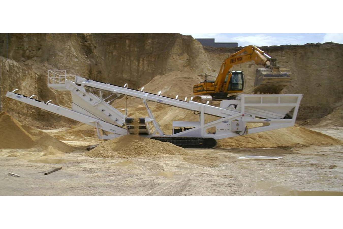Während sich bei gröberen Klassierungen über 2 mm im Straßenbau mobile Brech- und Siebanlagen zur Aufbereitung bereits bewährt haben, hat sich dieses innovative Konzept bei feineren Trennungen noch nicht durchsetzen können. Problematisch in der Feinklassierung ist die Bauart der dort eingesetzten Siebmaschinen. Die üblicherweise verwendeten Siebmaschinen, mit einem schwingenden Gehäuse und für die feine Siebung unpassenden Amplituden und Frequenzen, erreichen nicht die geforderten Siebqualitäten. Entsprechend hat die Industrie das Konzept nicht weiterverfolgt, obwohl dies massive Vorteile für den Betreiber einer solchen Anlage bieten würde. Setzt man jedoch eine direkt angeregte Siebmaschine auf einen gewöhnlichen Geräteträger, so lassen sich auch feine Sande direkt vor Ort im Steinbruch erzeugen. Ohne, dass diese vor der Verarbeitung erst über weite Strecken transportiert werden müssen.