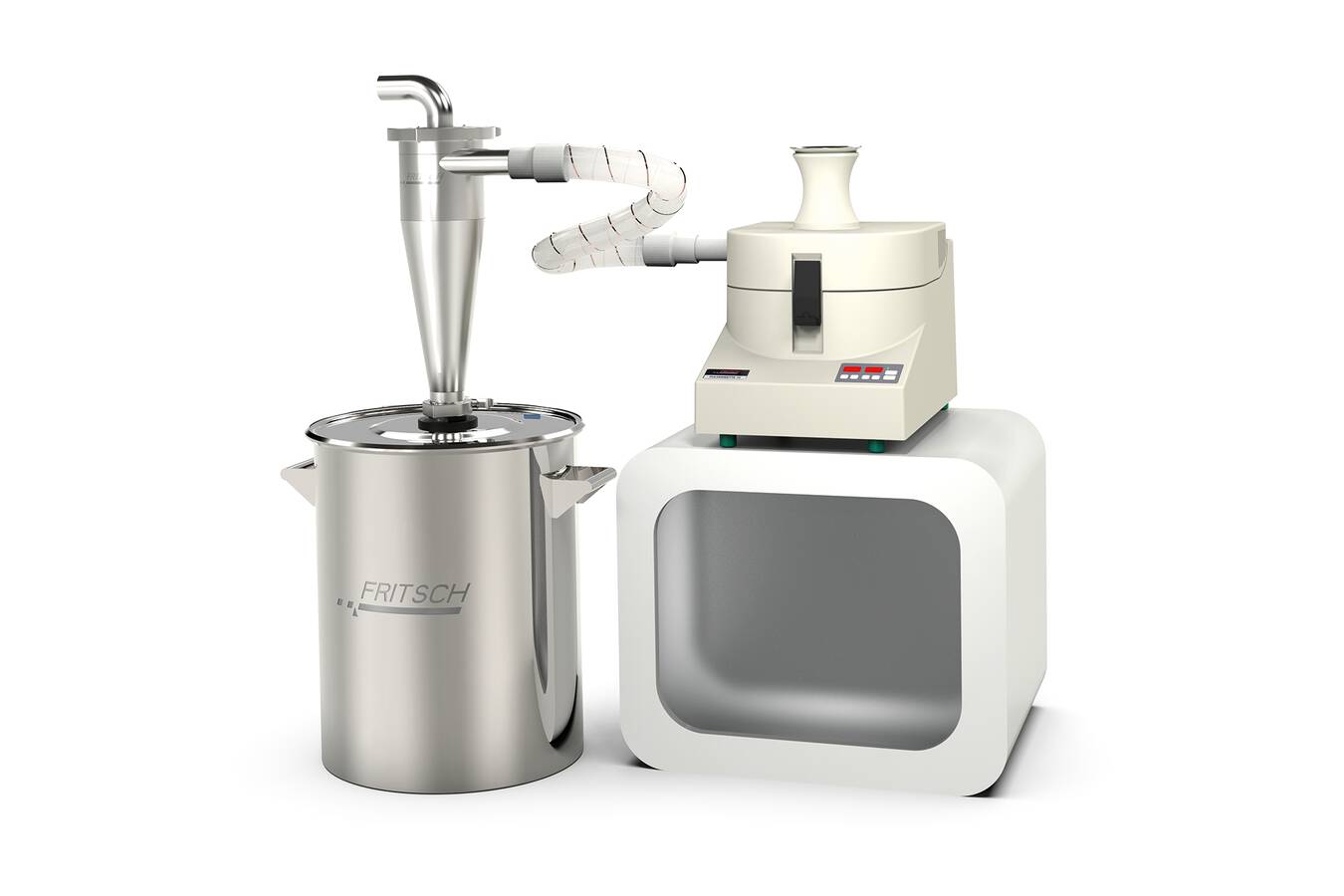 Die Homogenisierung des CBD-Isolats in kleinem Maßstab kann mit einer Kugelmühle mit geringem Energieeintrag oder durch automatisiertes Mörsern mit Pistill erreicht werden. Größere Chargen an CBD-Material lassen sich in den FRITSCH-Rotor-Schnellmühlen P-14 mit Zyklon schnell und kontinuierlich bis in den unteren Mikronbereich zur Feinheit von Talkumpuder homogenisieren. Dabei bleibt durch die Kombination aus extrem schneller Homogenisierung mit aktiver Materialentnahme aus dem Rotorbereich in Sekundenbruchteilen keine Zeit für einen Temperaturanstieg durch Reibung, der zu einem chemischen Abbau führen könnte. Ein weiteres Plus: Die Produktkontaktflächen bestehen aus Edelstahl oder lebensmitteltauglichen Kunststoff-Vakuumschläuchen für den Zyklon und können zwischen den Chargen komplett gründlich gereinigt werden, um die Wahrscheinlichkeit einer Kreuzkontamination zu verringern. Ein Motor mit variabler Drehzahl und eine große Auswahl an Siebringen ermöglichen die genaue Steuerung der Partikelgrößenausgabe