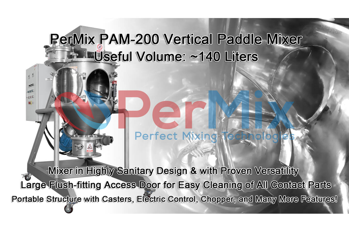 Vertikale Paddel-mischer von PAM werden häufig in der Lebensmittel-, Enzym-, Kosmetik-, Feinchemikalien- und Pharmaindustrie eingesetzt. Vertikale Paddelmischer von Permix ermöglichen das Mischen von Materialpartikeln und Zutaten bei minimaler mechanischer und thermischer Belastung, was diesen Mischertyp zu einer guten Lösung für zerbrechliche und hitzeempfindliche Produkte macht.