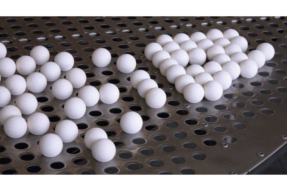 Bei vielen Siebanwendungen wird das Siebdeck durch Siebkugeln gereinigt, die sich auf einem Gitter direkt unter dem Siebgewebe befinden. Während des Siebvorgangs stoßen die Kugeln gegen das Siebgewebe und halten die Maschen offen und sauber. Die Karolee-Siebkugeln von Müller Beltex bestehen aus strapazierfähigem Polyurethan und verfügen über eine dauerhafte Elastizität, wodurch sie lange Zeit reinigungsaktiv bleiben. Das Material ist unempfindlich gegen Anhaftungen und Produktaufnahme und ist bakteriologisch unbedenklich. Die Kugeln sind leicht und daher sicher für Siebgewebe. Die Betriebssicherheit vieler Prozesse profitiert vom Einsatz verschleißfester Auskleidungen. Müller Beltex bietet dafür eine Reihe von Lösungen an. Übermässiger Verschleiss und Produktanhaftungen können zum Beispiel durch die Auskleidung von Anlagen mit dem langlebigen Kryptane verhindert werden. Dieses verschleißfeste Polyurethan hat einen niedrigen Reibungskoeffizienten, nimmt keine Feuchtigkeit auf und ist für trockene Lebensmittel zugelassen. Es eignet sich zum Beispiel für die Beschichtung von Kettenförderern, Schneckenförderern und Siebanlagen, aber auch für Elevatorhauben, Trichter, Rutschen und Fallrohre. Müller Beltex kann das Material ab Lager in den Standardplattengrößen 3050 x 1220 mm liefern.
