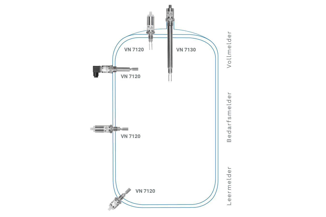 Durch eine Vielzahl an Prozessanschlüssen wie Gewinde, Flansche, Tri-Clamp und Milchrohrverbindungen nach DIN 11851 lässt sich der VN 7 in eine breite Palette von Anwendungen und Systemen integrieren. Er kann als Voll-, Bedarfs- oder Leermelder eingesetzt werden und eignet sich ebenso zur Erkennung von Überfüllungen sowie zur Leckageerkennung in doppelwandigen Behältern, Tanks oder Auffangbecken. Mit einem M12-Stecker ausgestattet, ermöglicht der Sensor eine einfache elektrische Integration. Außerdem verfügt er über IO-Link-Kommunikation mit SMART SENSOR PROFILE, was eine moderne und effiziente Datenkommunikation sicherstellt.