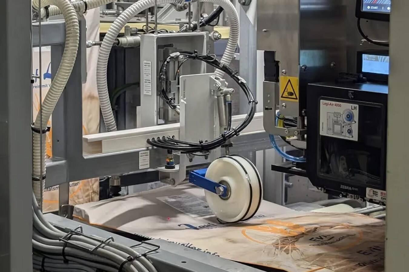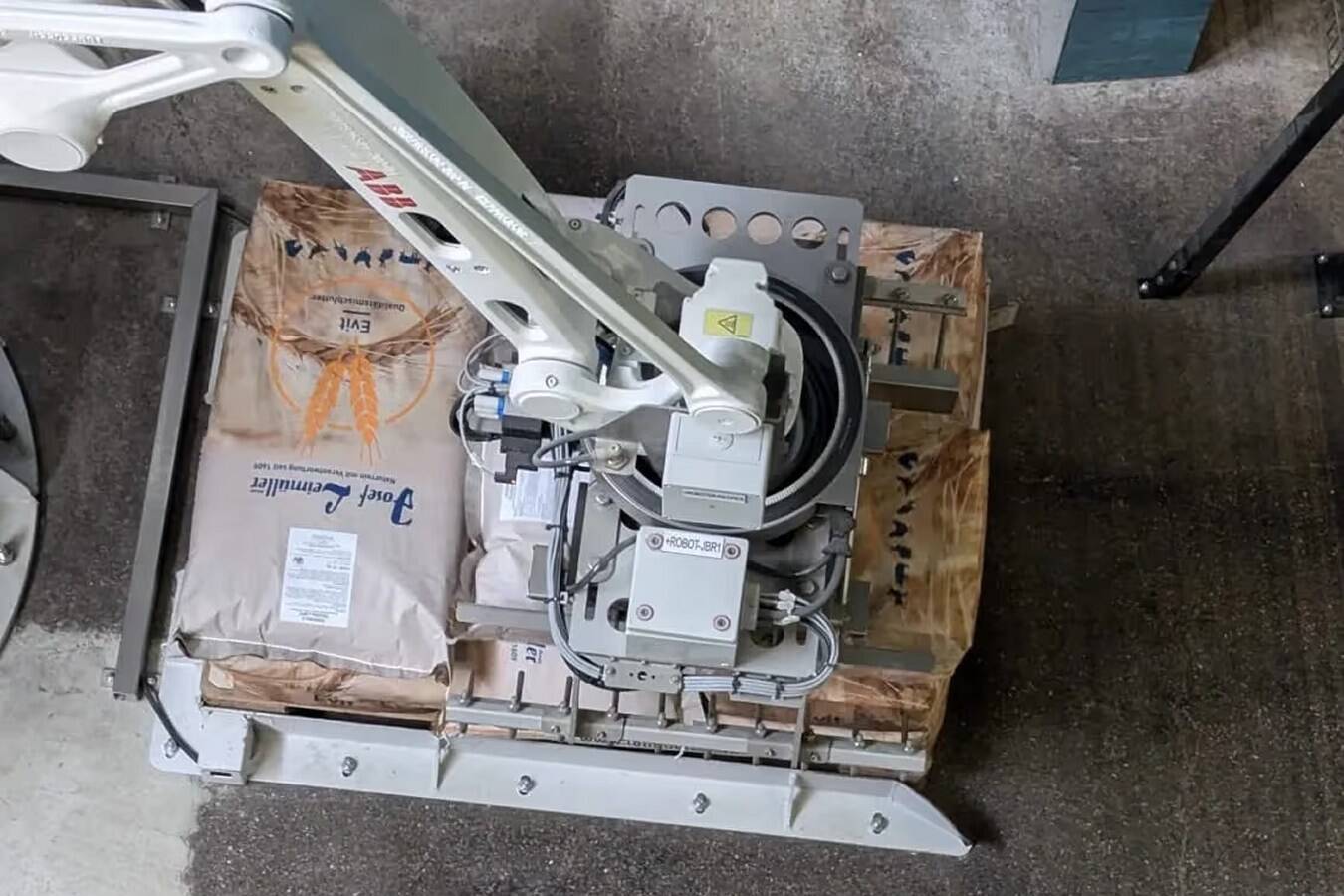 - Auf die jeweilige Sackbreite einstellbarer Greifarm für die Palettierung der Säcke