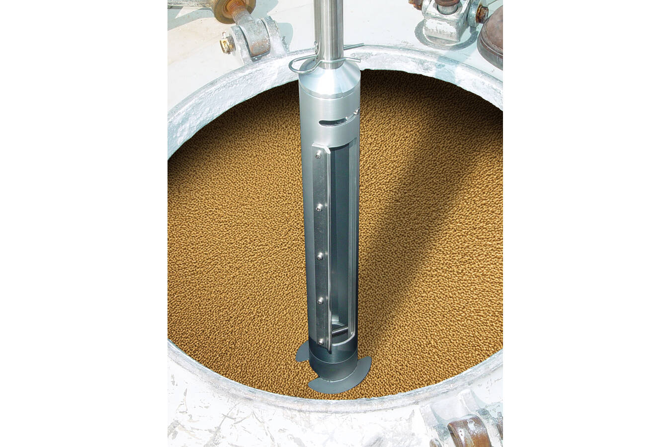 Der SiloBohrer entnimmt eine Allschichtprobe durch mehrere Schichten des Schüttgutes, so dass die Qualität, Zusammensetzung oder andere relevante Eigenschaften des gesamten gelagerten Materials analysiert werden können. Der Probenehmer passt durch Öffnungen ab einem Durchmesser von 90 mm und ist somit vielseitig einsetzbar. Ein spezieller Mechanismus ermöglicht das einfache Öffnen und Schließen der Entnahmekammer durch Drehen des robusten T-Griffs. Das federnd gelagerte Innenrohr minimiert die Gefahr des Verklemmens von groben Körnern. Die Bohrschaufeln und eine Schürfkante ermöglichen auch die Probenahme von zusammenbackenden und nicht fließfähigen Schüttgütern.