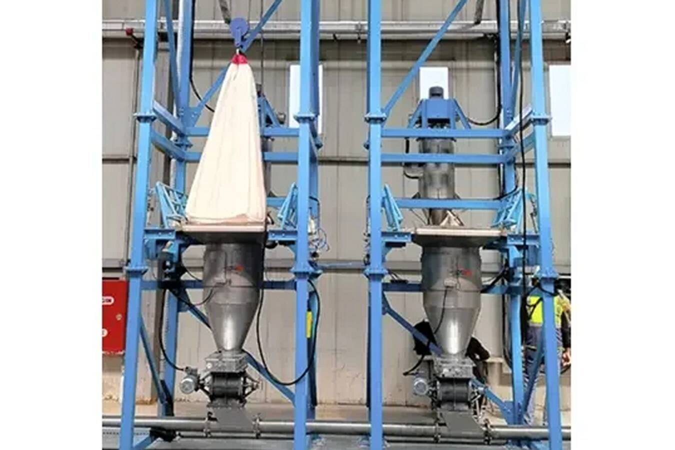 Der BigBag-Sack wird an den Rahmen der Entleerungsstation gehängt. Die Säcke werden normalerweise mit einem Kran oder Gabelstapler in die Station gestellt. Während des Entladens werden die Materialien in den Säcken durch die Schwerkraft oder mechanische Vibrationen entladen. Staubkontrollsysteme verhindern, dass sich während dieses Vorgangs Staub in der Umgebung ausbreitet. Nach Beendigung des Entladevorgangs wird die Station gereinigt. Die Big-Bag-Entladesysteme von EP sind so konzipiert, dass sie für eine einfache Reinigung und Wartung zugänglich sind.