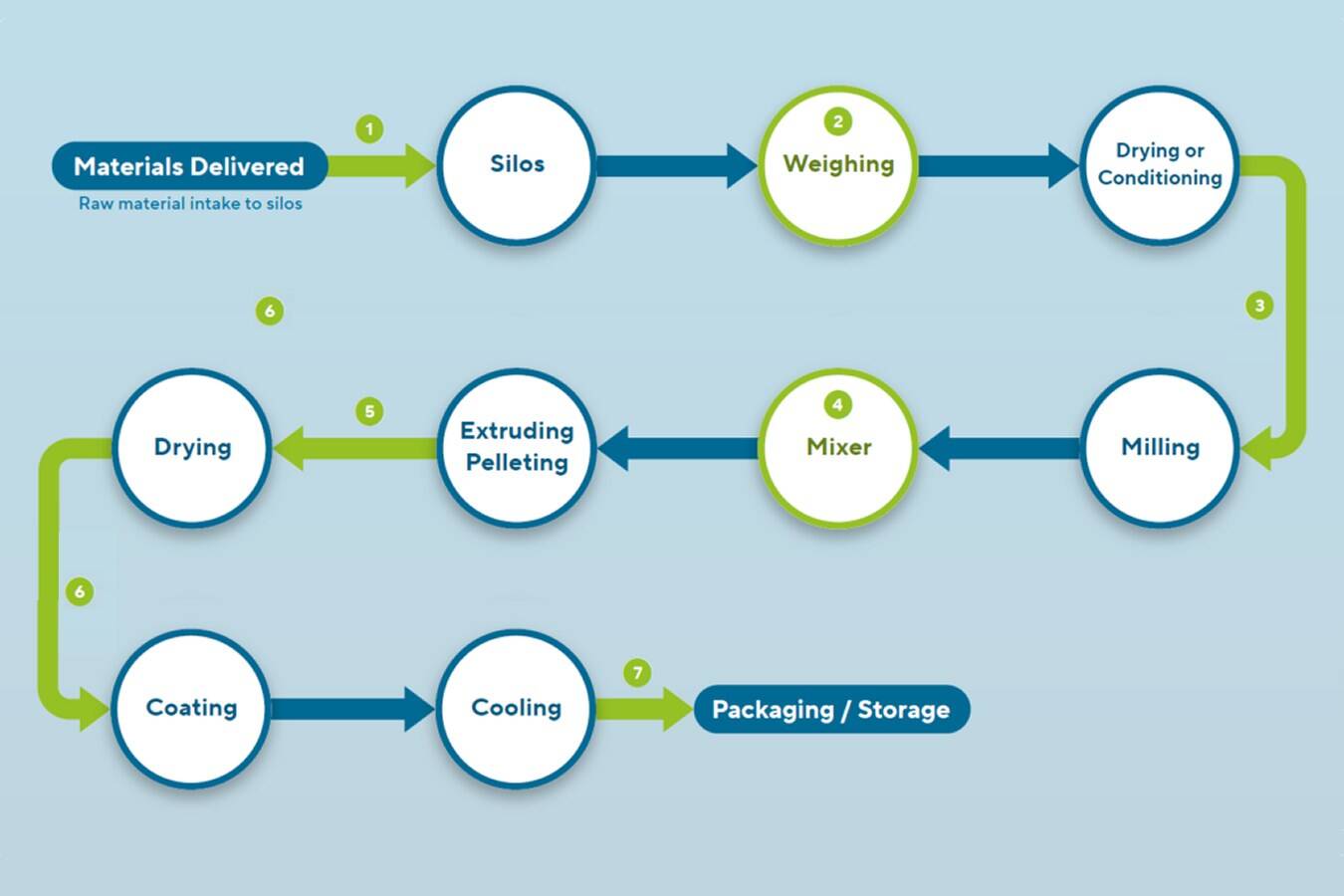 - Stellt sicher, dass die Rohstoffe richtig dosiert werden und gleicht unterschiedliche Feuchtigkeitsgehalte im gelagerten Material aus.